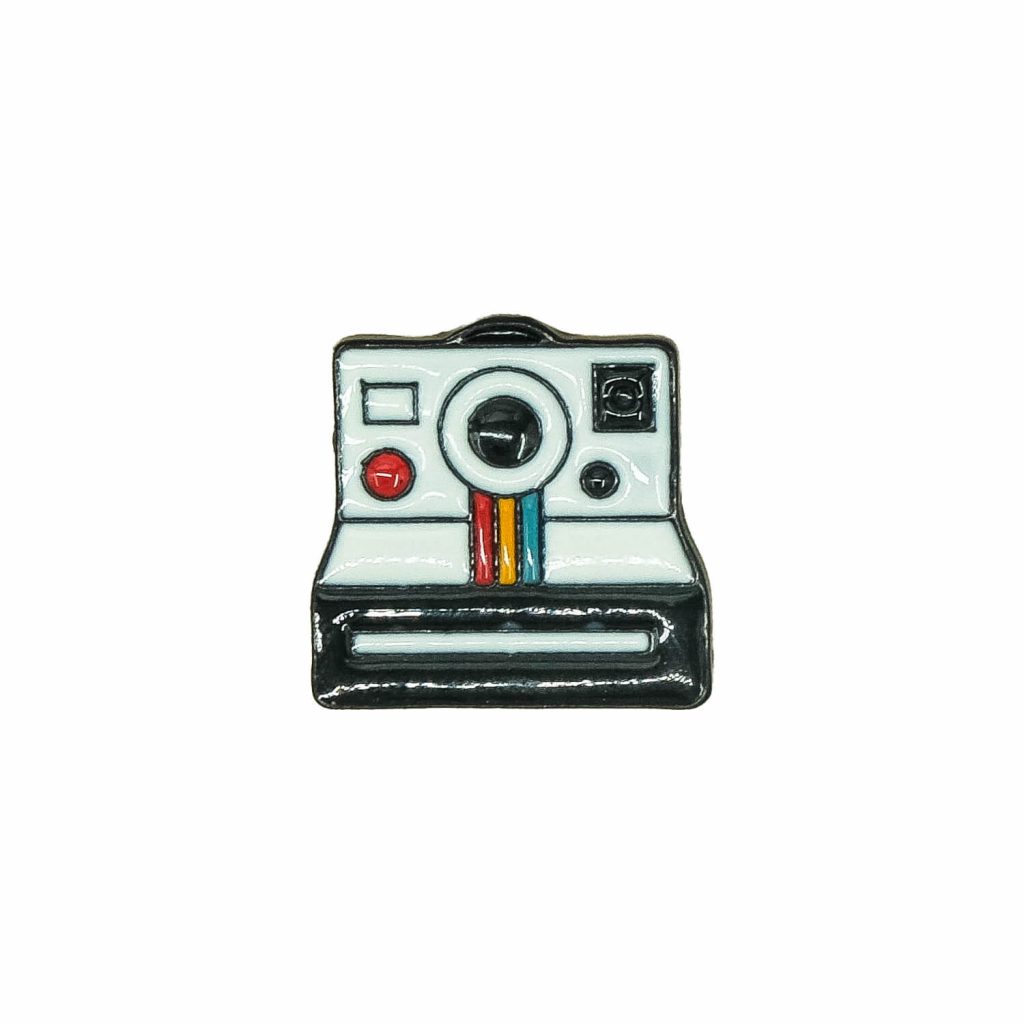 Beyaz Fotoğraf Makinası Figürlü Broş
