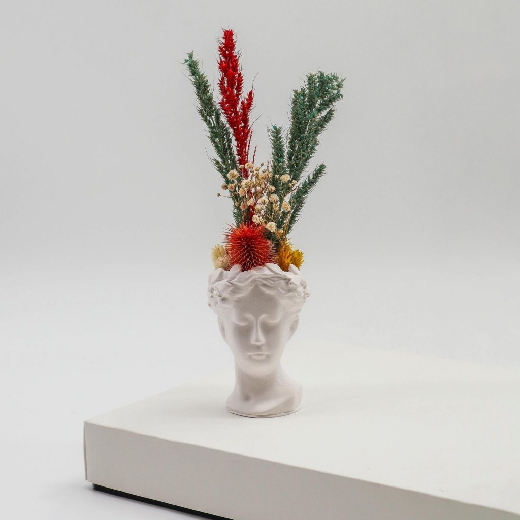 • El yapımı beton helen saksılı kuru çiçek.