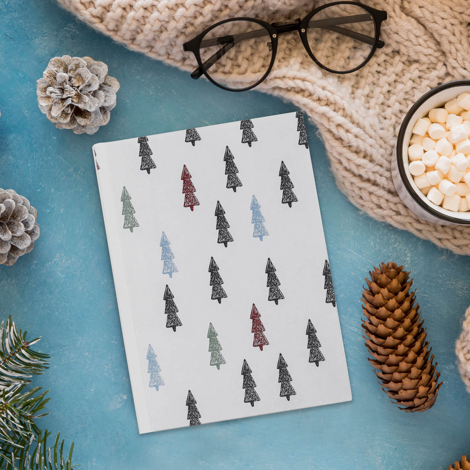Çam Ağacı Desenli Beyaz Defter