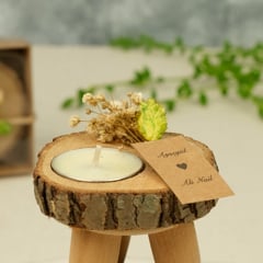 - Şeffaf kapaklı kraft kutuda kütük tealight süslemeli mum & mumluk